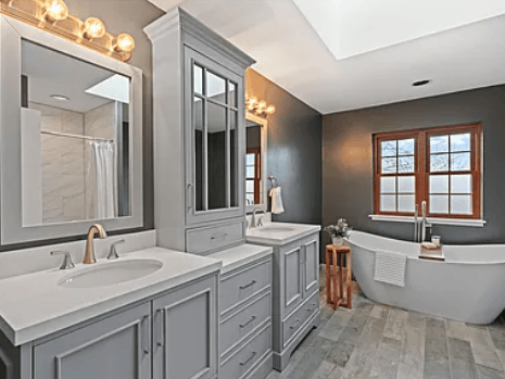 The most massive primary suite you’ll find in the South Hills with powered skylights, another fireplace and sitting area, and a luxurious en suite bathroom complete with a soaking tub, standing shower, and double vanity— hubba hubba!